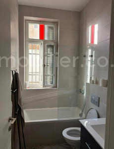 Localizado em uma rua tranquila e prestigiada, a apenas 2 minutos a pé da praia Royal Beach, este extraordinário apartamento de 3 cômodos é uma verdadeira joia. Situado em um primeiro andar muito elevado de um edifício preservado e totalmente renovado, oferece tetos altos de 3,4 metros que proporcionam luz natural e elegância ao ambiente.